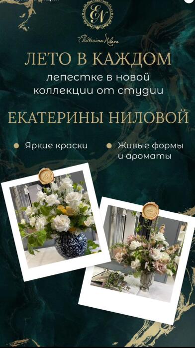 🌷 Екатерина Нилова приглашает окунуться в мир красивых цветов и декора с многолетним опытом и вниманием к каждому клиенту! Авторские букеты, редкие растения и стильный декор для любых нужд.